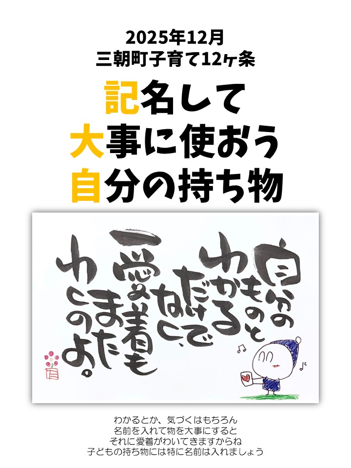 三朝町の子ども達の健やかな成長のために家庭や地域でできること、子育ての中で意識してもらいたいことを「三朝町子育て12か条」としてまとめました。